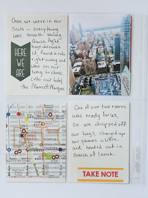 I cut the map they gave us at the hotel into pieces based on the areas we covered. You'll see them pop up through these posts. I did find that my 3x4 guide from Simple Stories seems to be a little off from my 3x4 cards. Like I said before, I'll provide more details later, but the cards I made up and printed myself using word art by Just Jaimee.